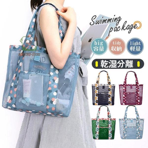 プールバッグ ビーチバッグ 女の子 花柄 肩がけ 子供用 ジム 海水浴 水泳バック 乾湿分離 中学生 高校生 スイムバッグ 撥水 プール用品