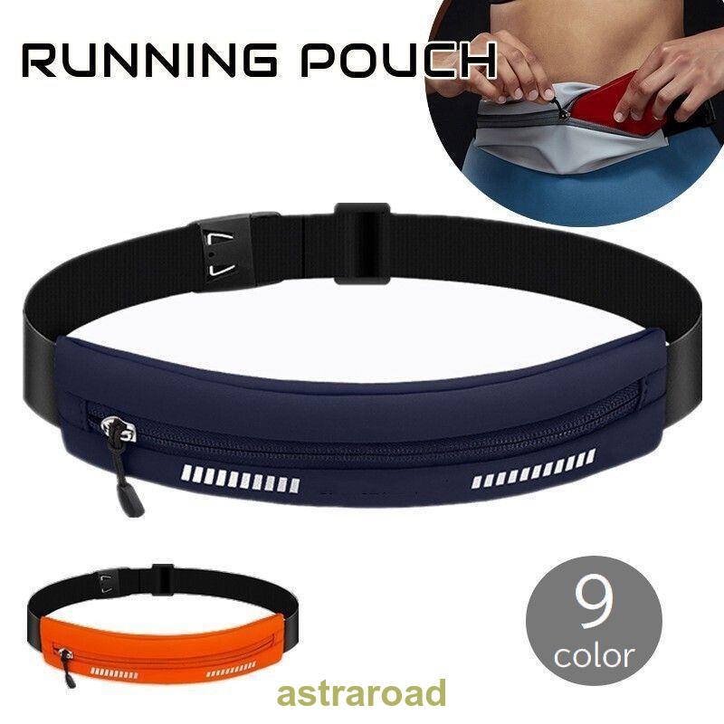 ランニングポーチ メンズ レディース 男女兼用 ウエストポーチ 軽量 コンパクト 撥水 無地 反射材付き サイズ調整可能 スマホ 小物 マラソン ウォ