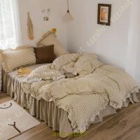 北欧風なチェック柄やフリルが付き、いつもの寝具にセットするだけで、可愛くお部屋を演出し、雰囲気を引き立てます。