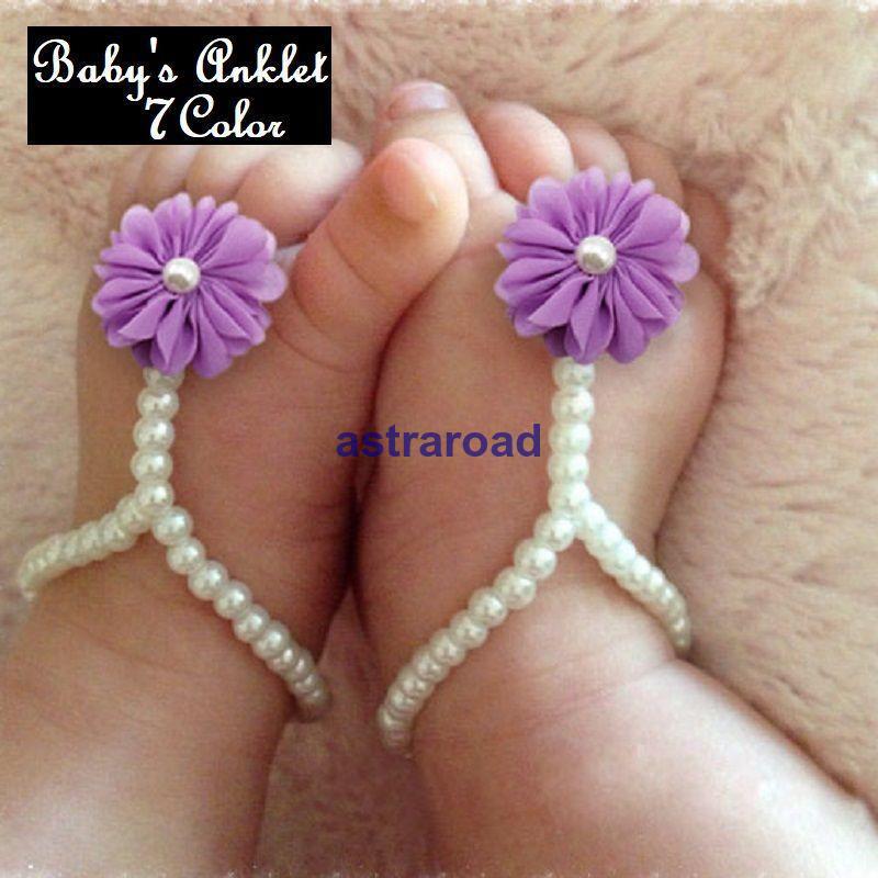 ベビー用アンクレット ベビー用アクセサリー ベビー 赤ちゃん 新生児 フェイクパール 花 フラワー レッド ピンク パープル ブルー イエロー ベビー