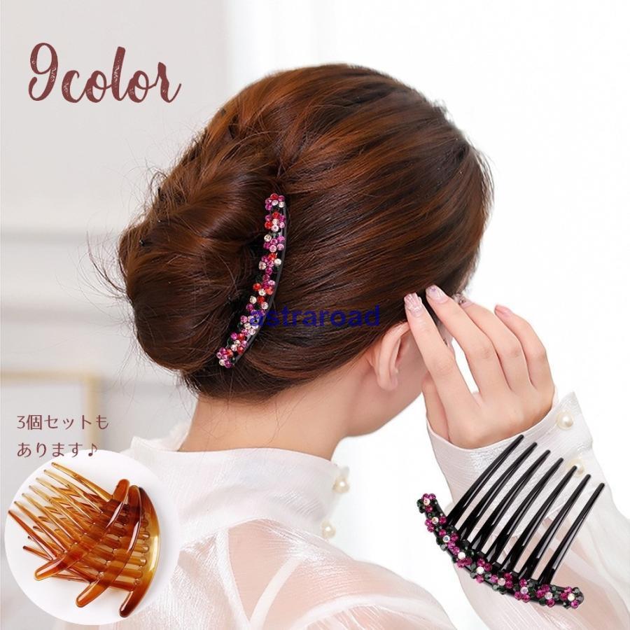 コーム ヘアコーム かんざし 簪 レディース 女性 ヘアアクセサリー 髪飾り 髪留め まとめ髪 ラインストーン キラキラ 大きめ グラデーションカラー