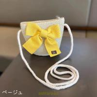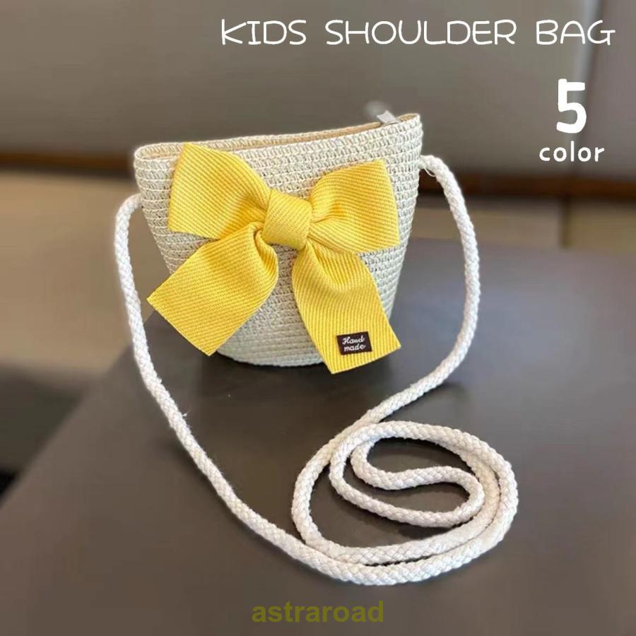 ショルダーバッグ ポシェット ミニバッグ ストローバッグ キッズ 子供 女の子 ガールズ 鞄 カバン 肩掛け 斜め掛け 麦わら リボン タグ付き かわ 夏