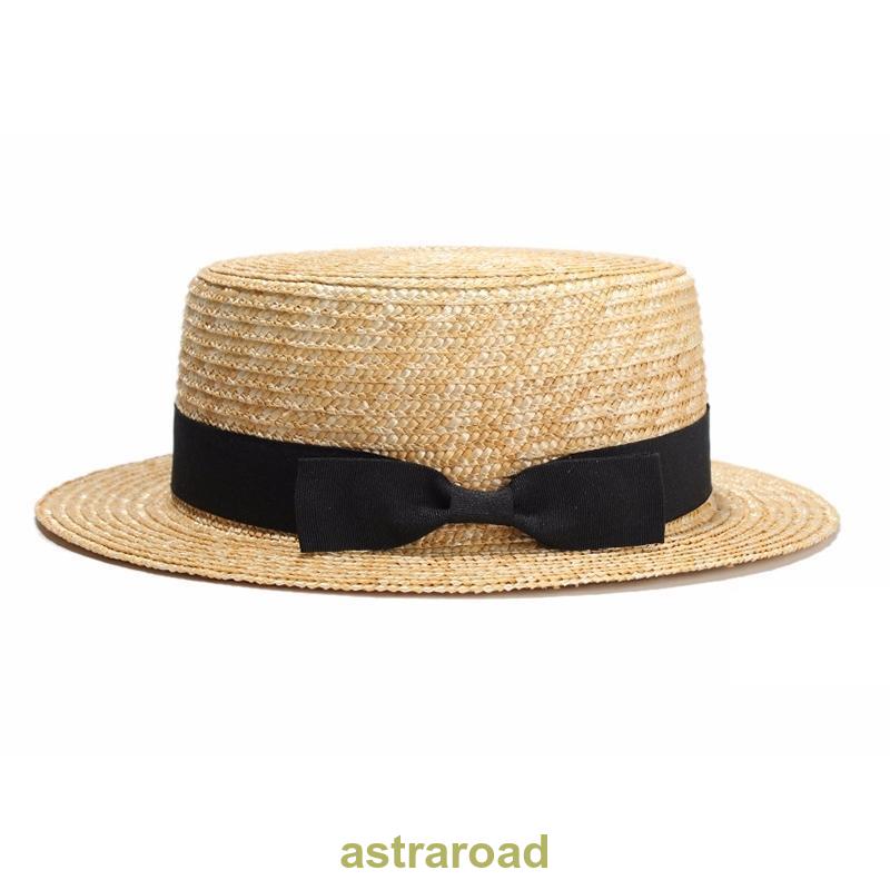 リボン付きのシンプルな女性用の麦わら帽子。