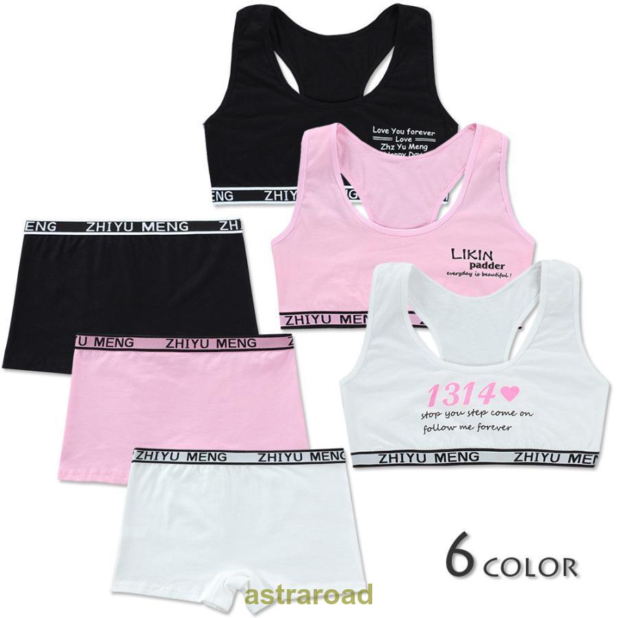 ジュニアブラ ボックスショーツ 上下セット ハーフトップブラ スポーツブラ ボクサーパンツ ボーイズレッグ 子供用 キッズ 女の子 ガールズ インナー 夏