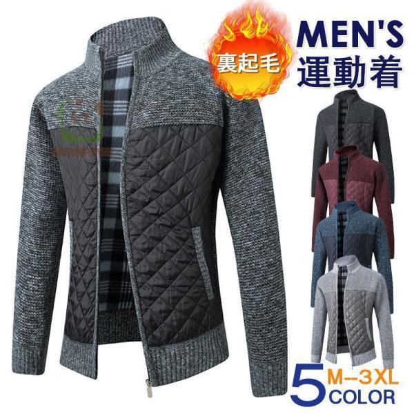 ゴルフウェア カーディガン メンズ ニット セーター 裏ボア 暖かい 異素材 切り替え キルティング 秋冬 ニットジャケット 厚手 おしゃれ