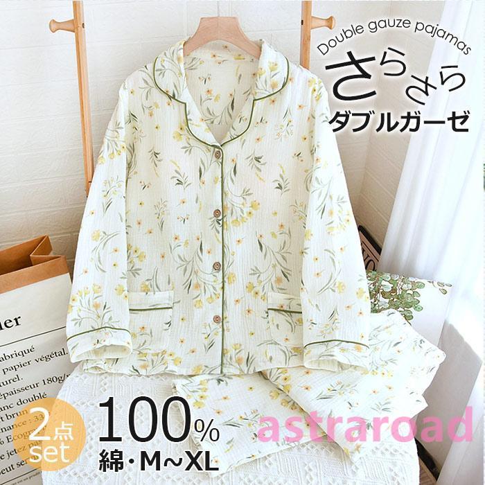 ガーゼパジャマ ゆったり レディース 前開き 部屋着 セットアップ ルームウエア 綿100%春 母の日 寝巻き 浴衣 二重ガーゼ 部屋着 入院 産後ガーゼパジャマ 薄手
