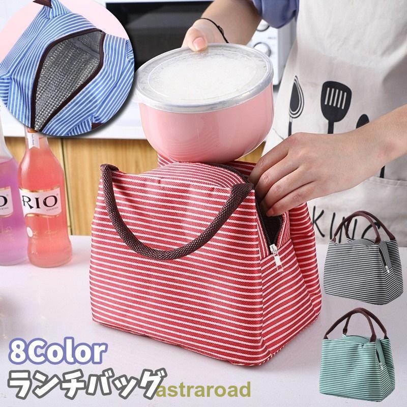 ランチバッグ ランチトート 保冷バッグ 保温バッグ マチ広め 開け口広め ファスナー 手提げ 持ち手付き お弁当箱入れ ボーダー カジュアル シンプル
