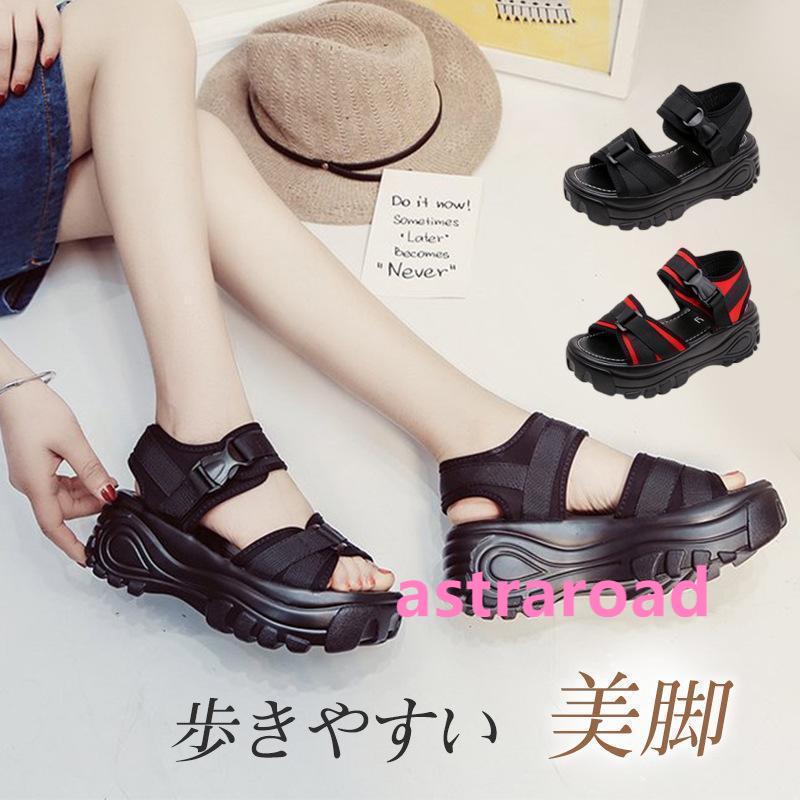 サンダル レディース 厚底 マジックテープ スポーツサンダル 通気性 一部 夏 韓国風 カジュアル 歩きやすい スニーカー 通気性 美脚 疲れない 可愛い