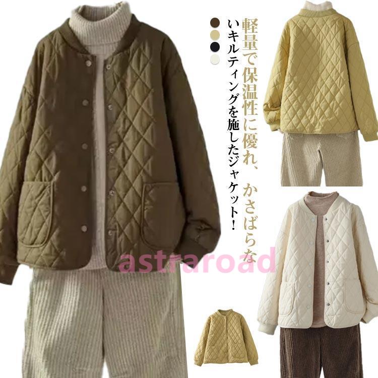 キルティングジャケット 中綿 レディース ノーカラージャケット ブルゾン 秋冬 ノーカラー キルティングジャケット コート 羽織り 秋冬 アウター あ