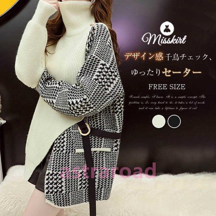 ニット セーター レディース トップス フェイクレイヤード 新作 秋 冬 厚手 ニットセーター 長袖 千鳥チェック チェック ハイネック アシンメトリー エレガント