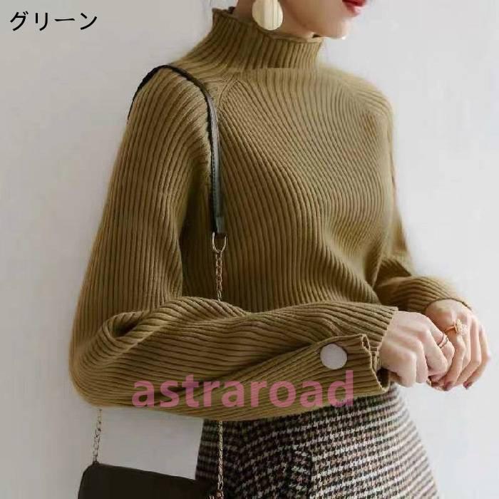 セーター カットソー レディース ニット ハイネック ベーシック 厚手 長袖 無地 トップス プルオーバー 秋 冬 ニットセーター ハーフネック デザイン感 ボタン