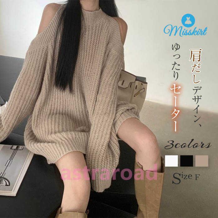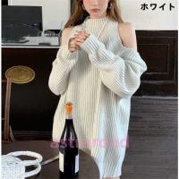 ニット セーター トップス カットソー ニットソー レディース 肩だし ニットセーター 無地 厚手 ホルターネック リブニット 新作 秋 冬 長袖 ゆったり プルオーバー ガーリー 大人 エレガント カジュアル かわいい 通勤 OL おしゃれ 着回し 20代 30代 40代