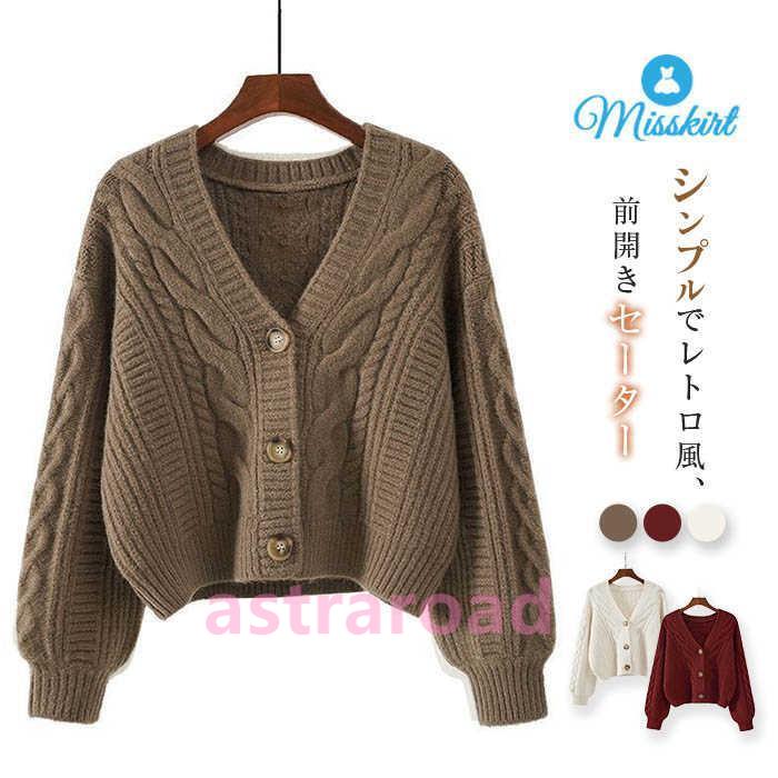 ニット セーター カーディガン レディース トップス ショート丈 秋 冬 前開き 羽織り 長袖 ニットセーター Vネック ニットカーディガン 無地 上着 レトロ ゆったり カジュアル おしゃれ かわいい シンプル 20代 30代 40代 50代 通勤 OL オフィス 大人 着回し