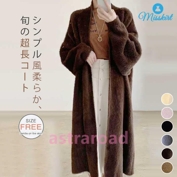 セーター カーディガン フェイクファー ニット コート コート フェイクファー レディース ロングセーター ロング 無地 アウター ロングカーディガン ロング丈 Vネック 長袖 秋 冬 前開き ノーボタン 大きいサイズ カジュアル ゆったり 前開き 羽織り 体型カバー