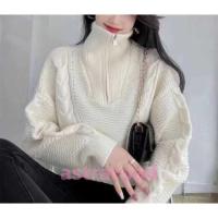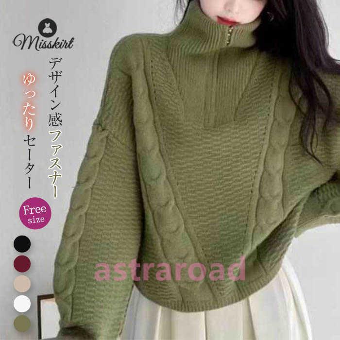 セーター レディース ニット コート トップス ニットソー リブニット 秋 冬 新作 ニットセーター ファスナー 長袖 タートルネック プルオーバー 無地 ゆったり
