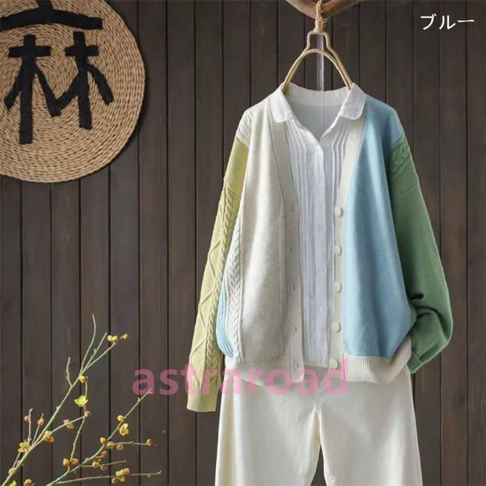 カーディガン レディース 新作 ニット セーター Vネック 長袖 無地 トップス 配色 コート アウター デザイン感 前開き 羽織り 秋 冬 ボタン ニットカーディガン ゆったり 通勤 OL レトロ オフィス カジュアル 体型カバー お洒落 大人 30代 40代 50代 可愛い
