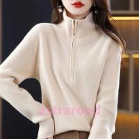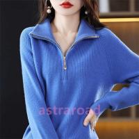 ニット セーター レディース コート トップス 折り襟 ヘンリーネック デザイン感 ファスナー 秋 冬 新作 ニットセーター 長袖 プルオーバー 厚手 無地 ゆったり