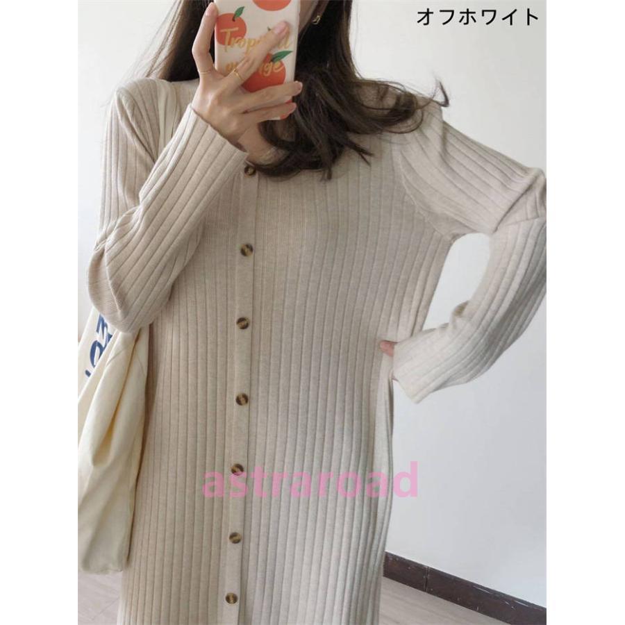 ニット ワンピース レディース 新作 Vネック 無地 長袖 ニットワンピース ベーシック ロングカーディガン ロング セーター ワンピ ボタン ゆったり 秋 冬 前開き