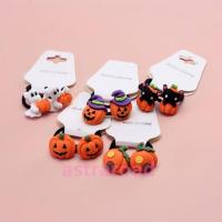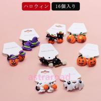 パンプキン ヘアゴム (16個) かぼちゃ カボチャ 黒猫 ヘアアクセサリー ボンボンゴム 髪飾り 女の子 子供 こど