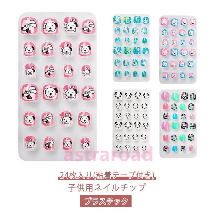 キッズ 子供 可愛い ジェルネイル スクエア ショート ネイルチップ ネイルチップ 24枚入り キャラクター 子供用 つけ爪 ネイルチップ