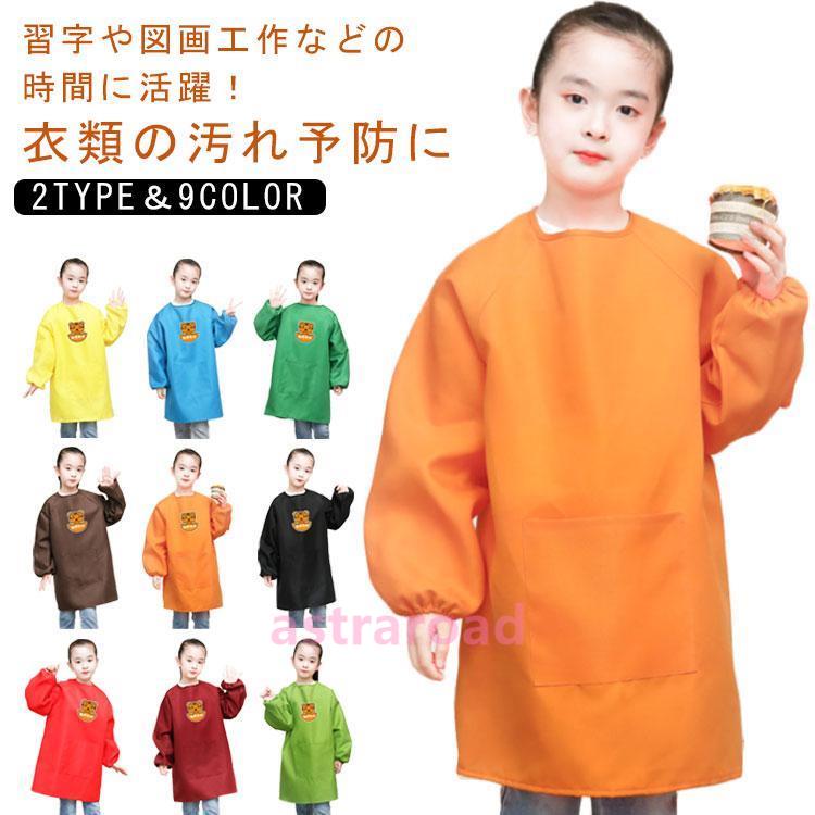 スモック 長袖 エプロン お食事 遊び着 汚れ防止 3層 ポケット付き 撥水加工 子供服 キッズ 幼稚園 保育園 小学生 トップス 袖口ゴム 習字 書