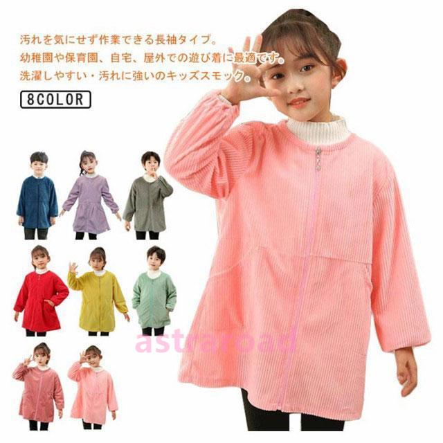 スモック 子供用 長袖スモック 幼稚園 エプロン 小学生 長袖 ジップアップ 前開き プレイウェア コーデユロイ お砂場着 砂遊び ベビースモック 可