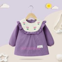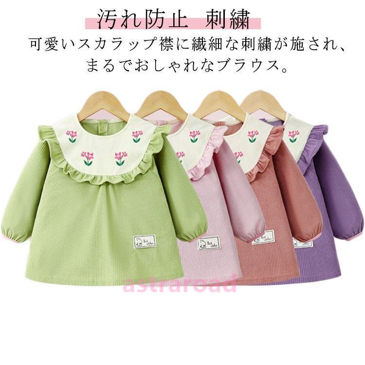 スモック 子供 女の子 ブラウス 長袖スモック 刺繍 お砂場着 砂遊び ベビースモック 可愛い フリル 汚れ防止 お食事 エプロン 汚れ防止 絵画 外