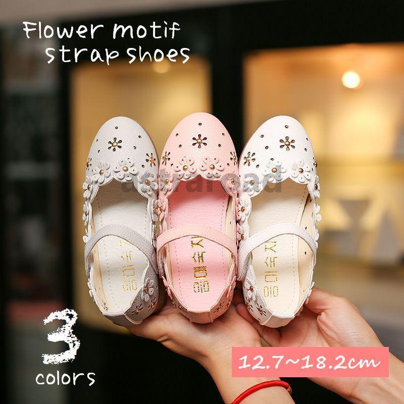 女の子らしいお花のモチーフが可愛いストラップシューズ。
