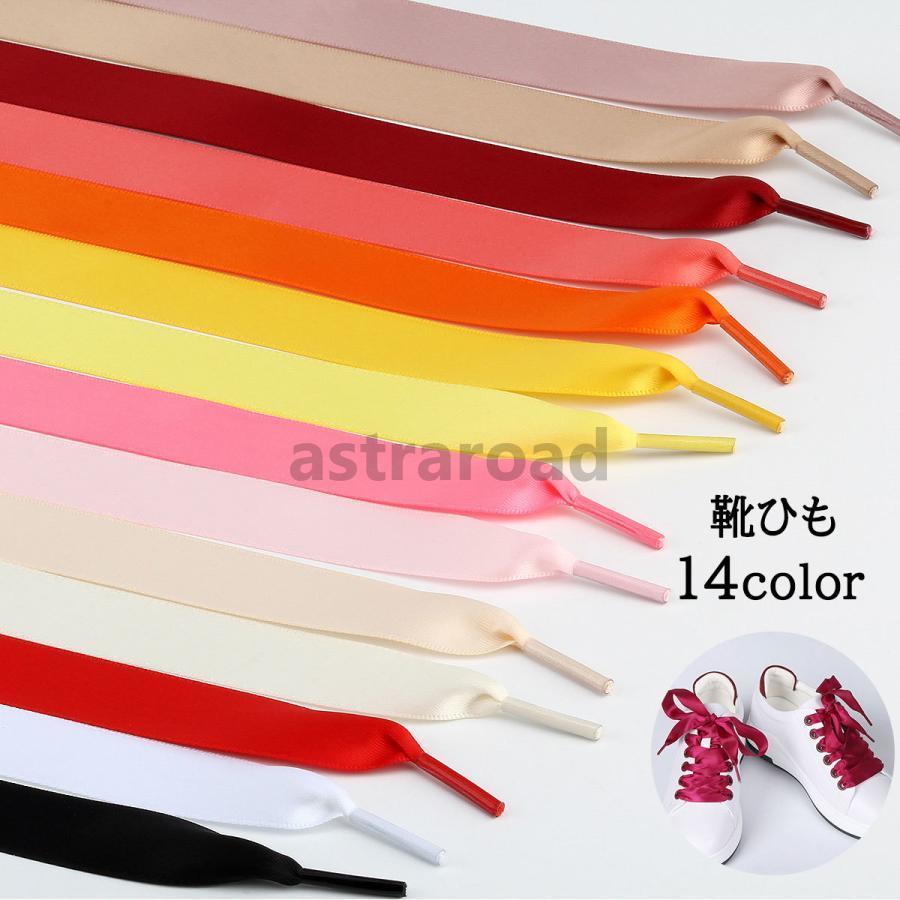 靴ひも 靴紐 2本セット シューレース レディース 女性 女の子 リボン 幅広 スニーカー シューズ 単色 無地 おしゃれ かわいい