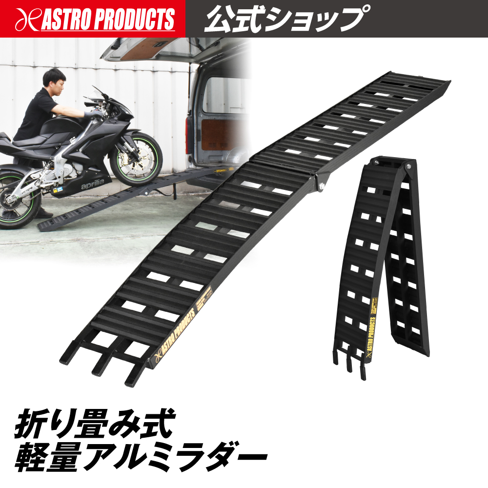 アルミラダー ブラック AL550 | ラダー アルミ製 折畳式ラダー タイダウン付属 二輪車 バイク 積載 軽量 アストロプロダクツ