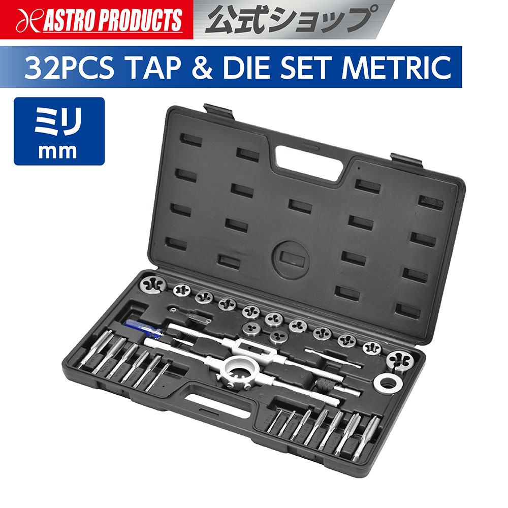 タップダイスセット ミリ (32点組) | ネジ山 修正 清掃 タップハンドル ダイスハンドル アストロプロダクツ
