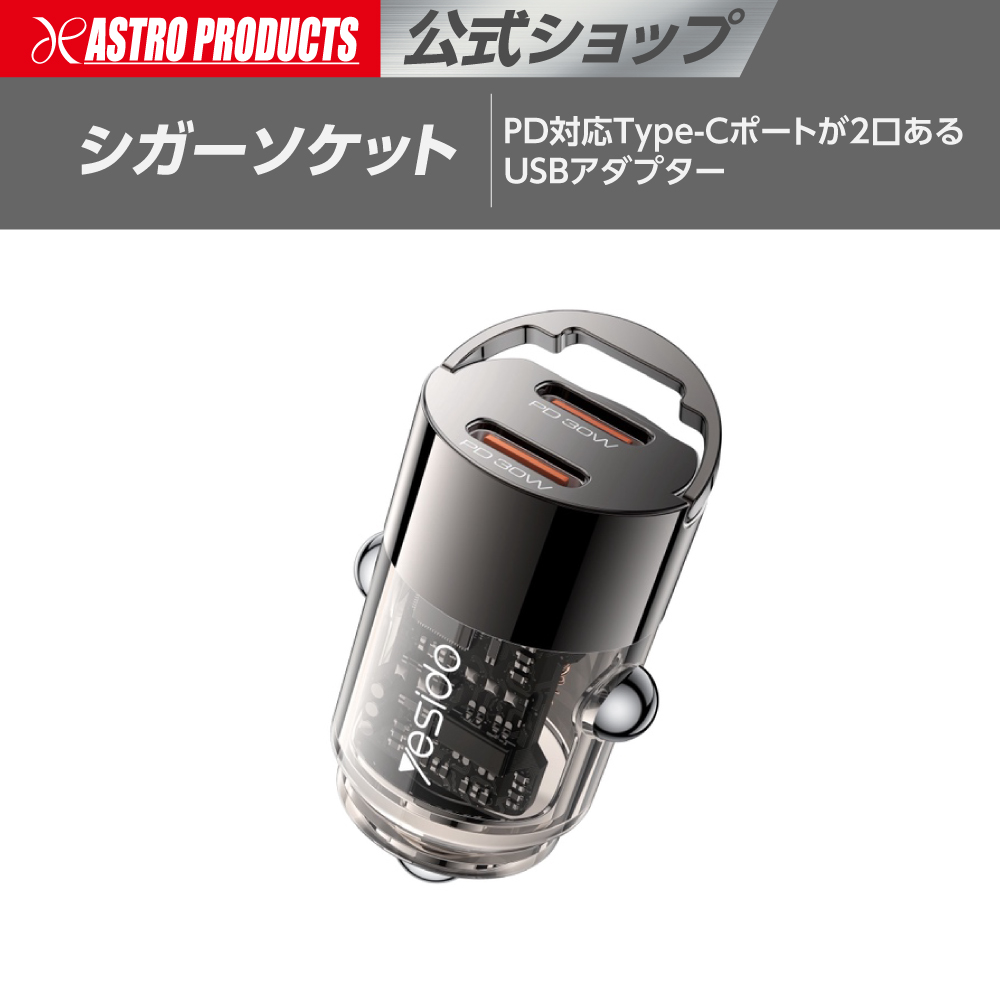 シガーソケット用 USBアダプター C & C UBP762 | 車 クルマ 充電 チャージ 充電ケーブル スマホ スマートフォン iPhone Type-C DC12 24V アストロプロダクツ