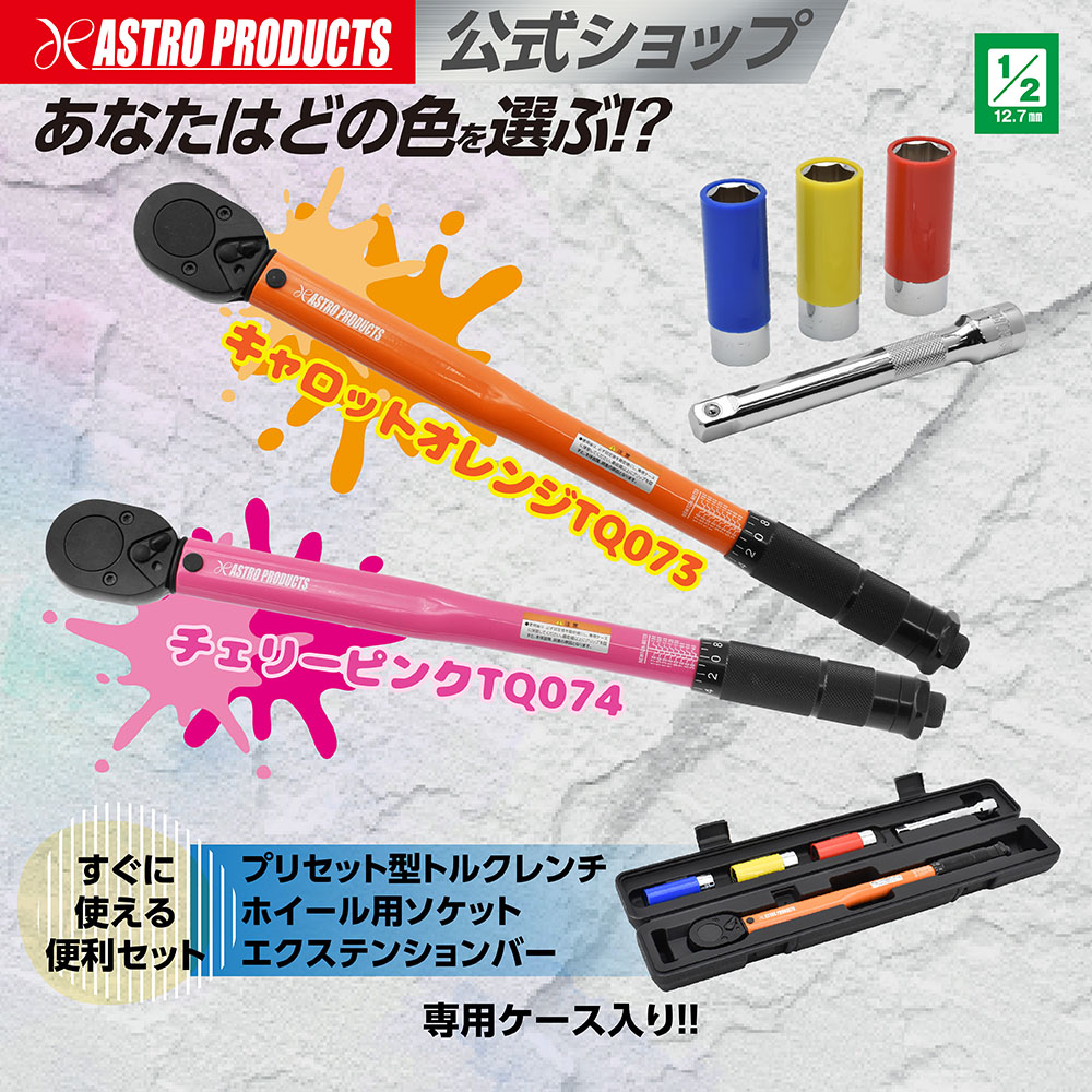 1/2DR プリセット型トルクレンチ キャロットオレンジ TQ073 / チェリーピンク TQ074 (限定) | エクステンションバー 収納ケース アストロプロダクツ 2603pr02