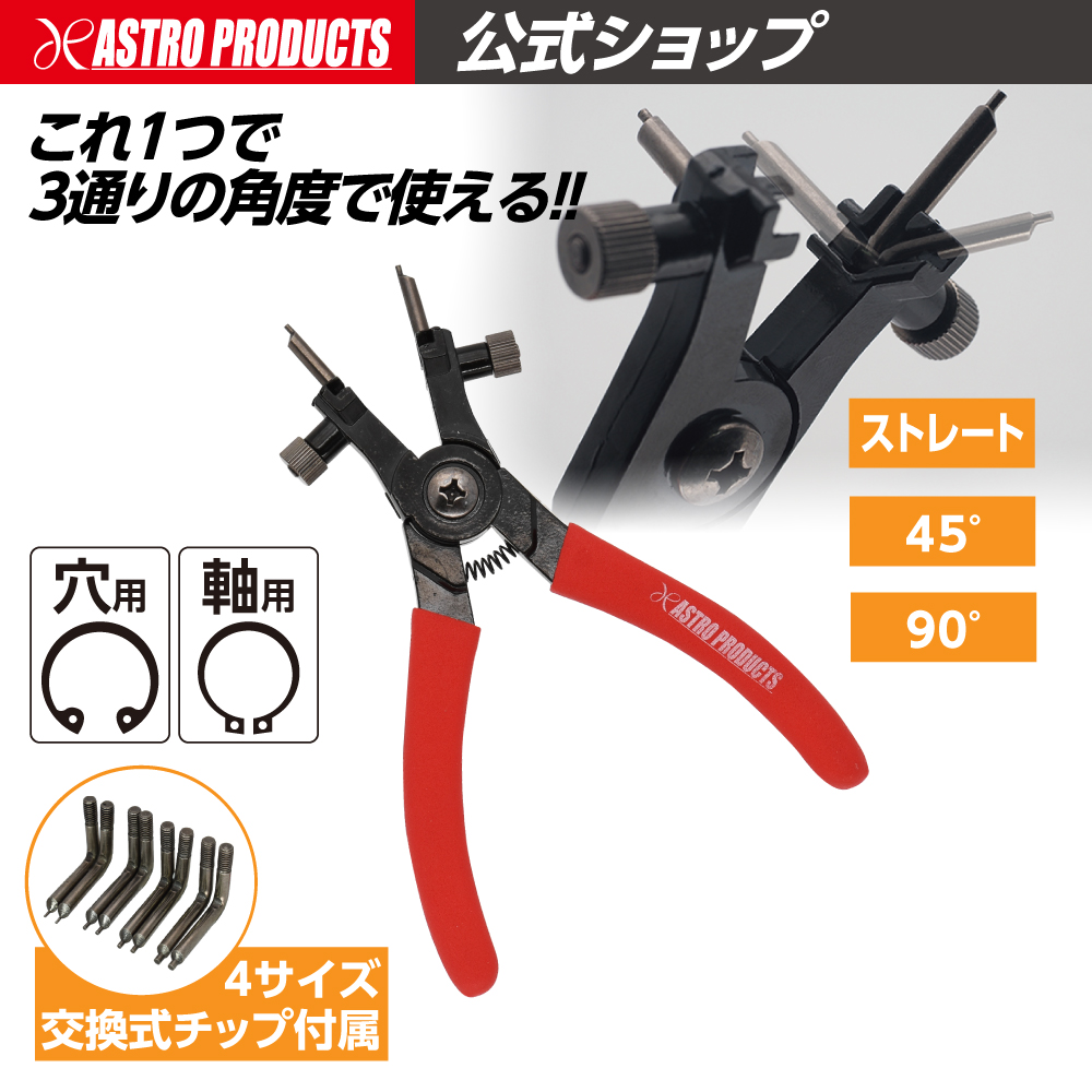 アストロプロダクツ マルチアングル スナップリングプライヤー 穴用 / 軸用