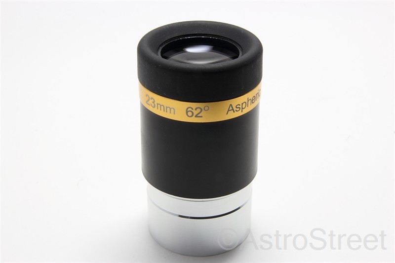 アメリカンサイズ31.7mm径、23mm62度アイピース<br><br><B>非球面レンズを使用したアイピースです</B><br>レンズはコーティング、コバ塗り等の迷光対策もしっかり施され非常にキレのある像を映し出します。<br><br>先端にフィルターネジ付。<br><b>バレル等はアルミですが、ボディが一部プラスチックとなっております。<BR>[焦点距離] 23mm<br>[スリーブ径] 1.25インチ(31.7mm)<br>[見掛視界] 62°<br>※上記データはメーカーカタログ値となります<br>※付属品は本体、キャップ前後となります<br><br></b>