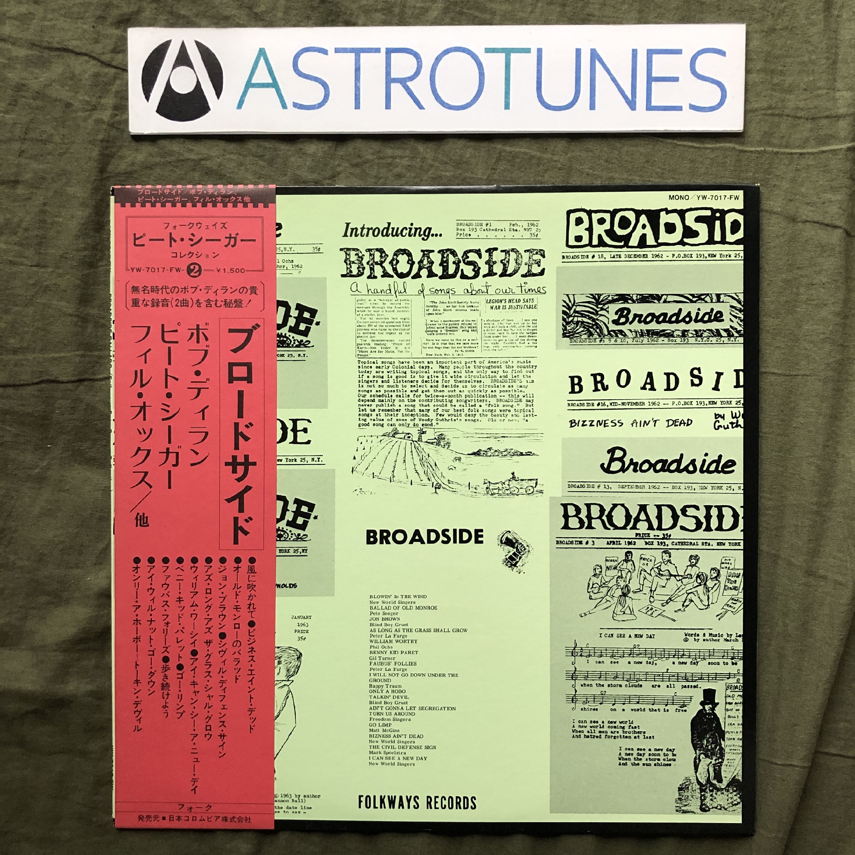 傷なし美盤 美ジャケ 美品 1976年 国内盤 V.A. LPレコード Broadside Ballads Vol. 1 帯付 Bob Dylan デビュー前の録音, Pete Seeger
