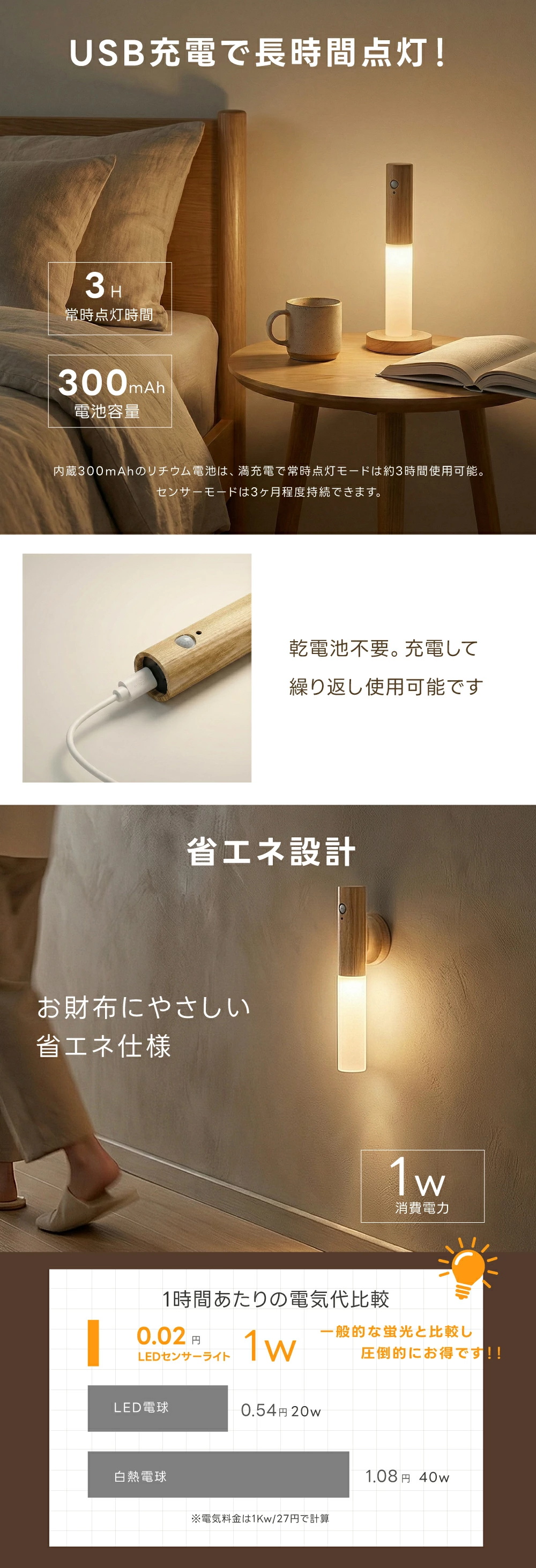 センサーライト コンセント 人感センサー 付き LED ライト 自動点灯 充電式 授乳ライト 明るさ 感知 夜間ライト 常夜灯 補助灯 授乳用 室内照明 消灯 室内 階段