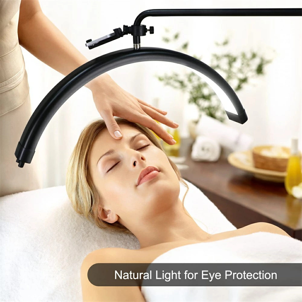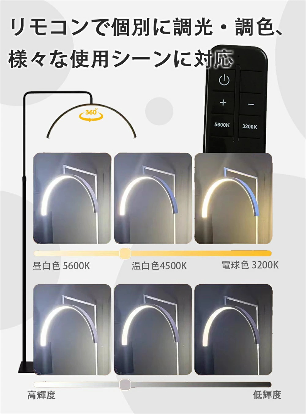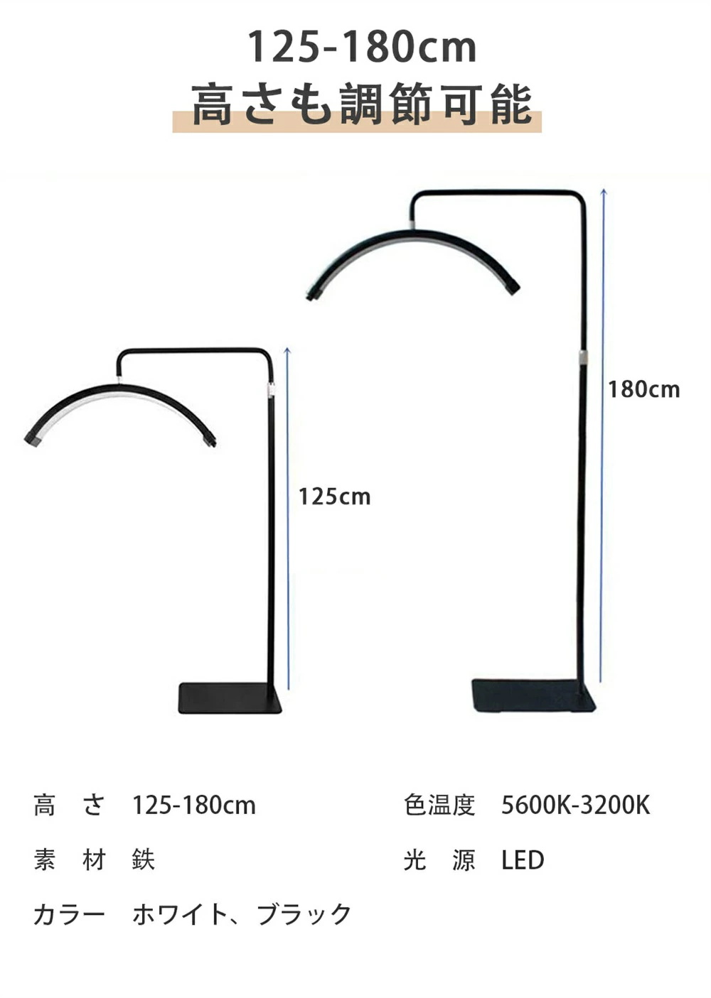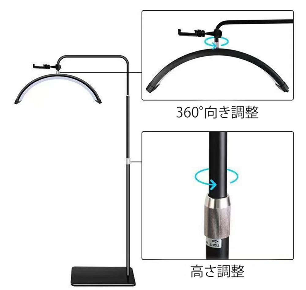 ハーフムーンライト LEDライト フロアライト フロアランプ スタンドライト おしゃれ 360度回転可能 高度/角度調節 照明 リングライト 化粧ライト 美容室 サロン