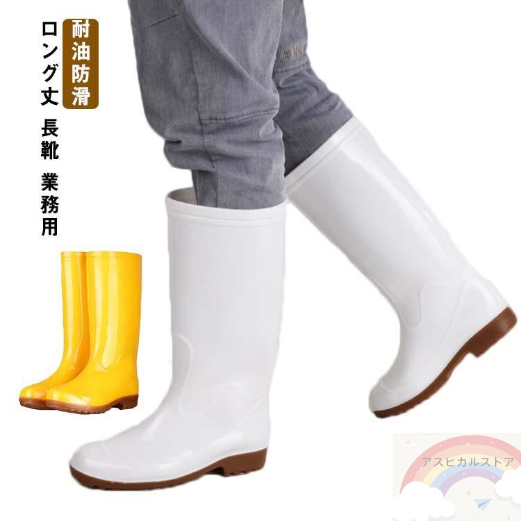 長靴 白長靴 耐油長靴 業務用 厨房シューズ 耐油長靴 衛生長靴 コックシューズ レインブーツ ロング丈 厨房用 食品加工 工場 耐油 抗菌 防カビ