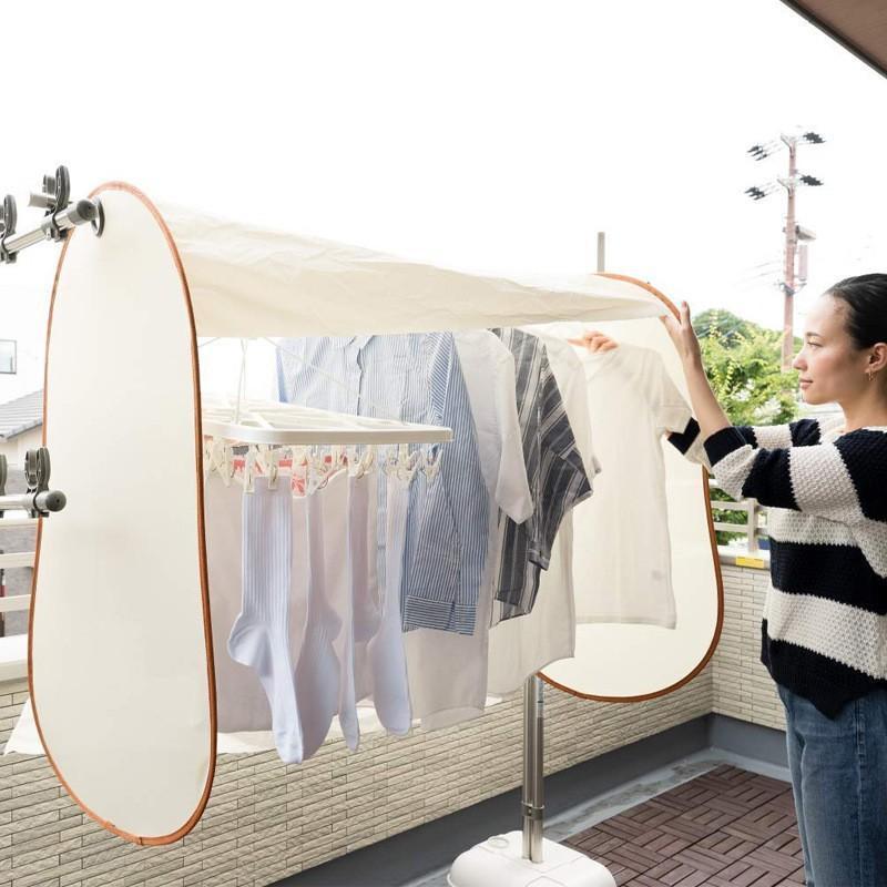 洗濯物カバー 花粉 雨よけ 花粉よけ 目隠し 虫除け ベランダ 屋外 花粉避け 雨避け 黄砂 洗濯物干し 外干し 折りたたみ 120cm 雨よけカバー あめよけカバー コンパクト 収納袋 外干しする時に起きる・雨や日差し・視線などの問題をカバーで解決。
