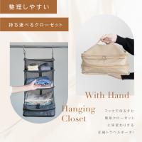 トラベルポーチ 吊り下げ 圧縮 インナーバッグ 4段式 衣類ラック 収納 旅行 出張 クローゼット 省スペース 大容量 衣装ケース en-hhg003