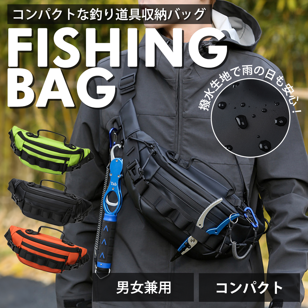フィッシングバッグ エギングバッグ 渓流釣り フライフィッシング 船釣り オフショアジギング ボディバッグ ヒップバッグ コンパクト 小さめ 防水 登山