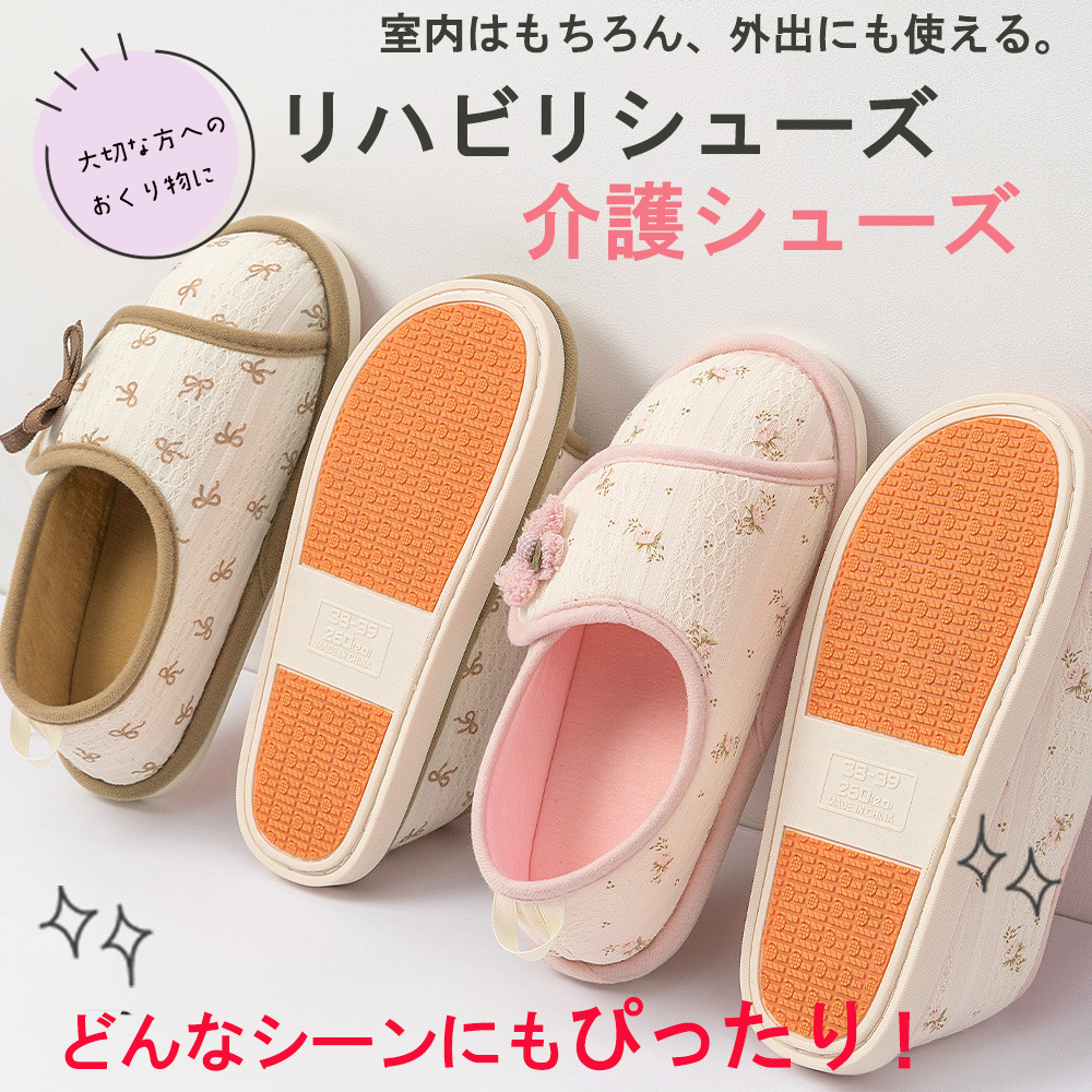 やさしいデザインで心も明るく 華やかなリボン柄・花柄デザインで、年齢を重ねてもおしゃれを楽しめる一足。「かわいいね」と言われる喜びを贈れます。