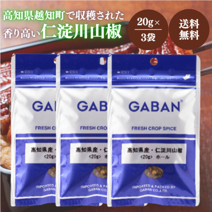 GABAN 高知県産 仁淀川山椒 20g 3袋 セット ぶどう 山椒 ホール スパイス 香辛料 調味料 下味 サンショウ うなぎ ソテー パスタ デザート ハウス ギャバン 国産