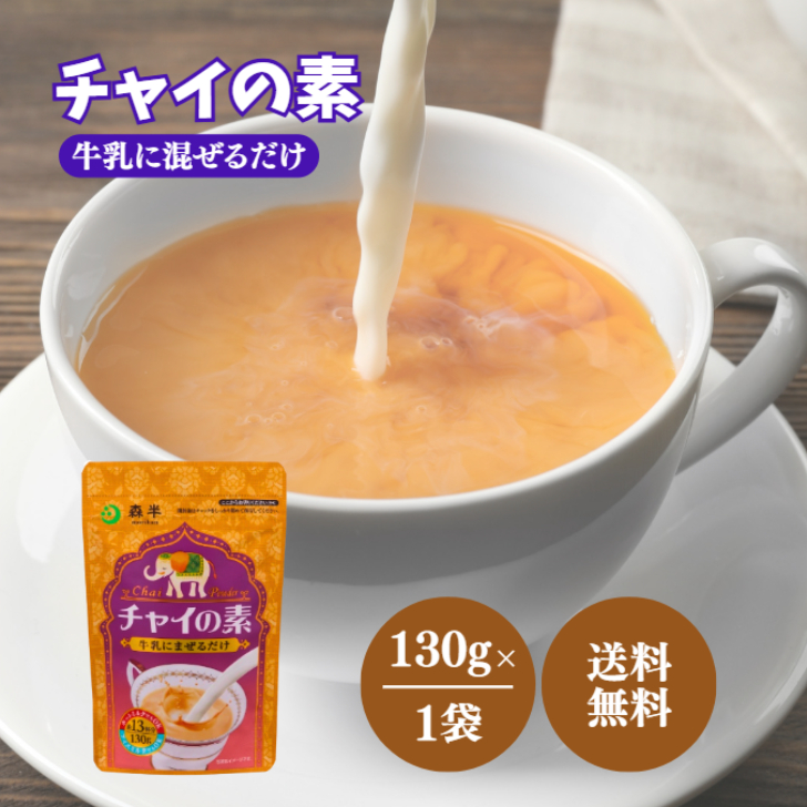 森半 チャイの素 130g 1袋 チャイ 素 チャック付き 紅茶 シナモン 粉末 パウダー インド ティー 茶 ホット アイス 牛乳 常温保存