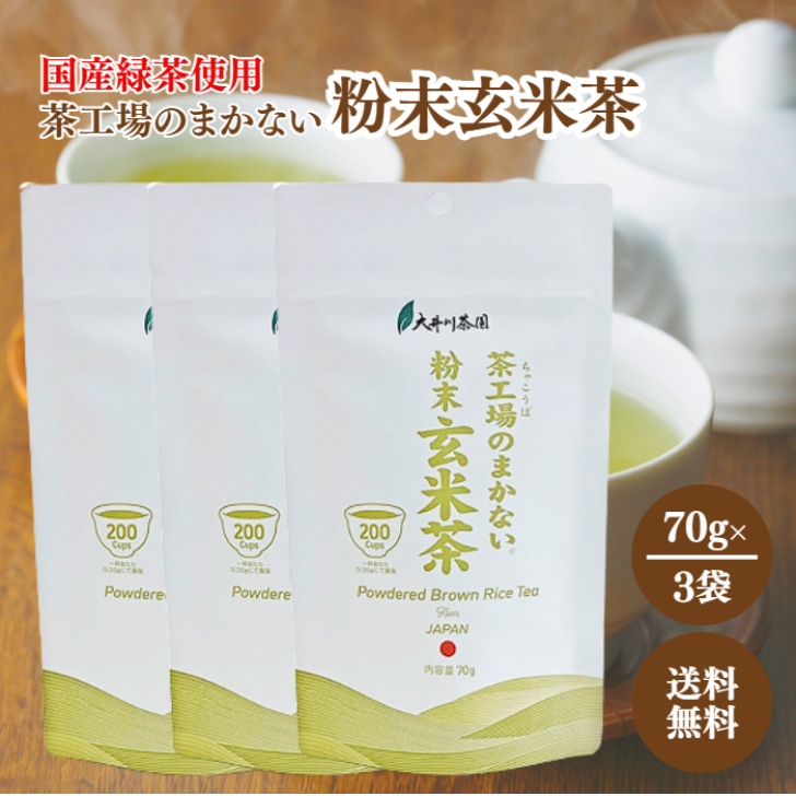 大井川茶園 茶工場のまかない 粉末玄米茶 70g 3袋 国産 緑茶 粉末 パウダー チャック付き 玄米茶 茶葉 微粉末 お茶 茶 日本茶 アイス ホット 水 お湯 溶けやすい
