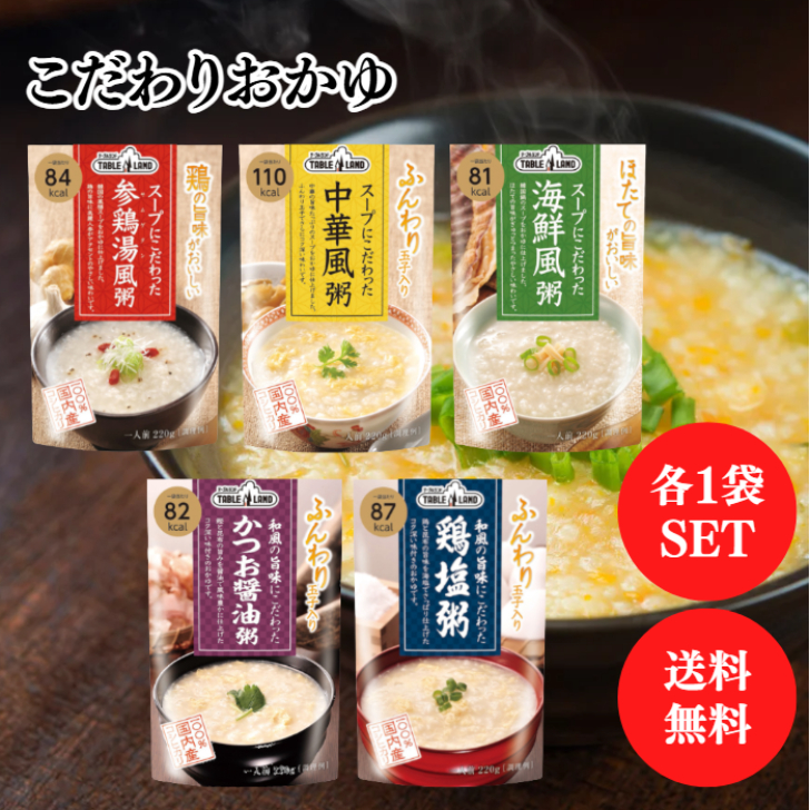 テーブルランド こだわりおかゆ 5種類各1袋 セット ( 参鶏湯風 中華風 海鮮風 かつお醤油 鶏塩 ) お粥 雑炊 お試し アソート 常温保存