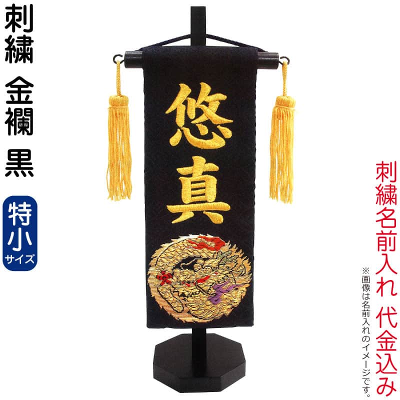 【2026年度新作名前旗】 全長28cmと大変コンパクトで飾りやすい名前旗です。立身出世や厄払いを意味する龍の意匠はお祝いに相応しく、縁起が良いですね。黒色の生地はお部屋の雰囲気をぐっと引き締め、きらびやかな金色の刺繍とのコントラストも見事です。間口・高さともに大変コンパクトですので、場所を選ばず手軽にお飾りいただけます。兜や鎧の横に飾って賑やかな雰囲気をお楽しみいただくのもおすすめです。 サイズ:巾8×高さ20(cm) 台付全長28(cm)