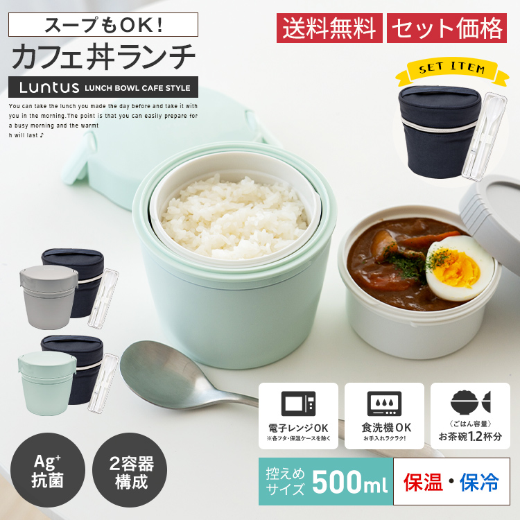 保温弁当箱 カフェ丼ランチ CD500 保温バッグ コンビセット 箸 アスベル ランチボックス 弁当箱 保温 丼 2段 女子 男子 女性 おしゃれ 抗菌 ランチジャー 食洗器