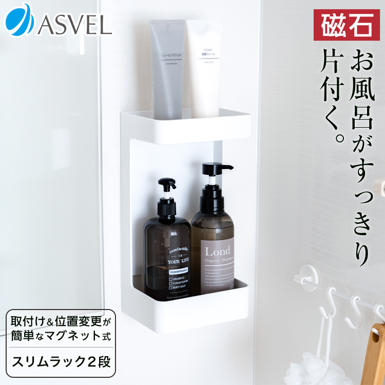 収納 浮かせる収納 お風呂 バス収納 マグネット スリム ラック 2段 アスベル ASVEL ラックスMG ボトルラック おもちゃラック ギフト
